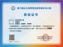 日前,第六届长三角师范生教学基本功大赛决赛(安徽芜湖)落下帷幕,我院历史学(师范)2023级钱维佳获得2024年安徽省高等学校教学技能大赛二等奖和长三角师范生教学基本功大赛三等奖。竞赛于2024年9月启动,先后包括校赛、省赛、全国决赛。竞赛参赛单位分别来自长三角三省一市多所院校,参赛院校数与选手数均创历史新高。