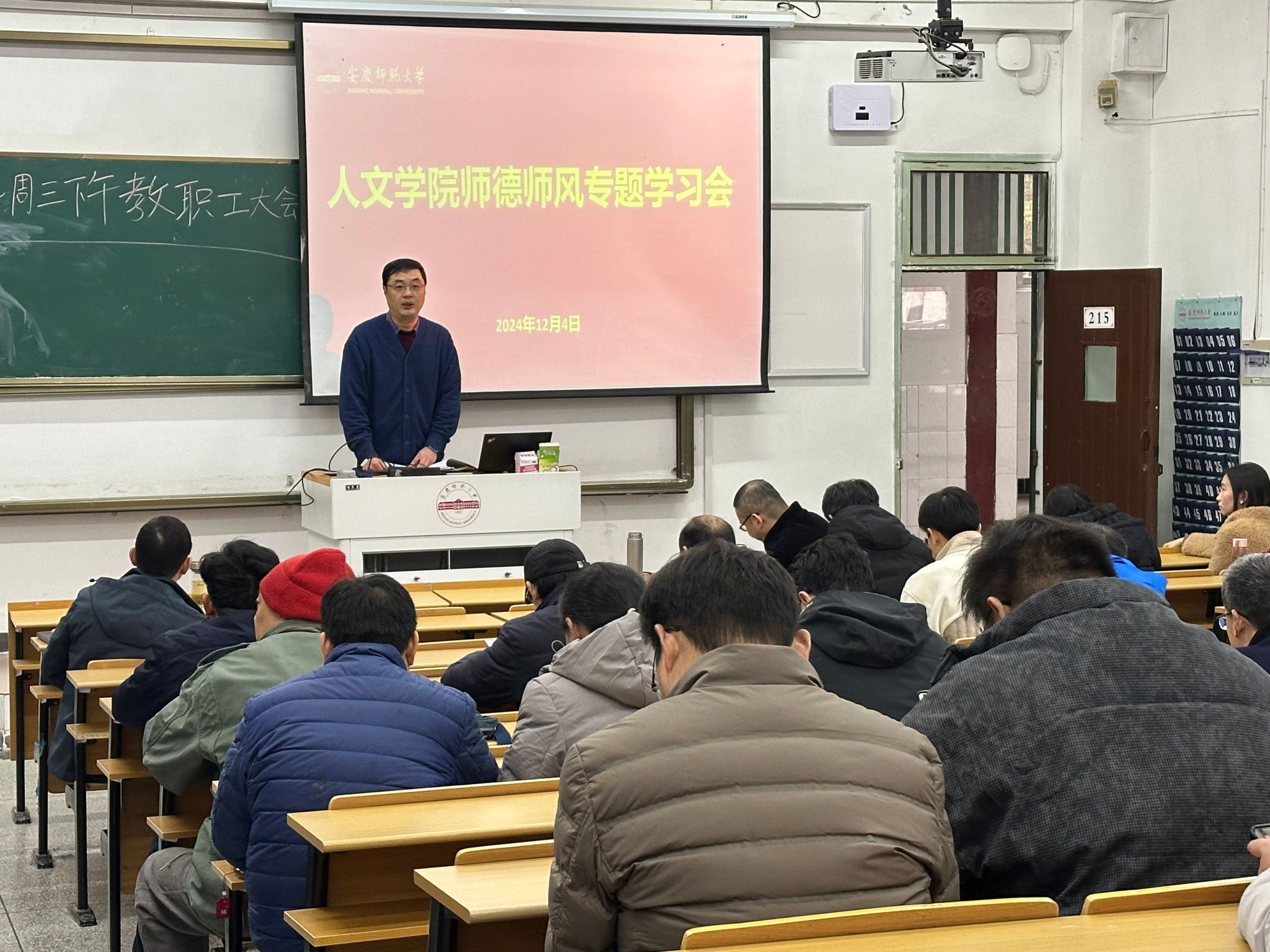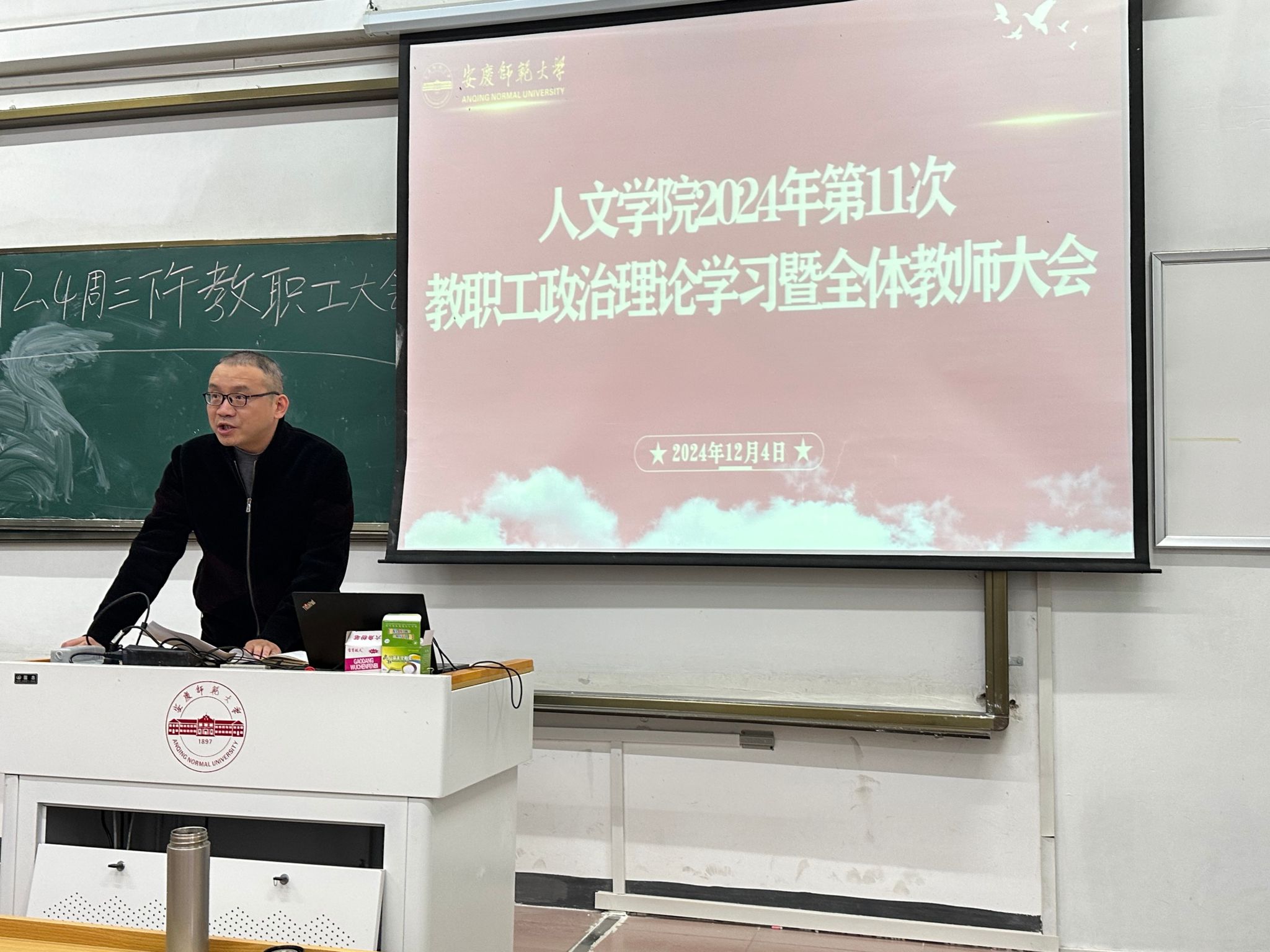 12月4日,伟德国际1949始于英国召开2024年第11次教职工政治理论学习会暨全体教师大会。院长汪孔丰主持会议,学院领导班子,全体教职工参加会议。