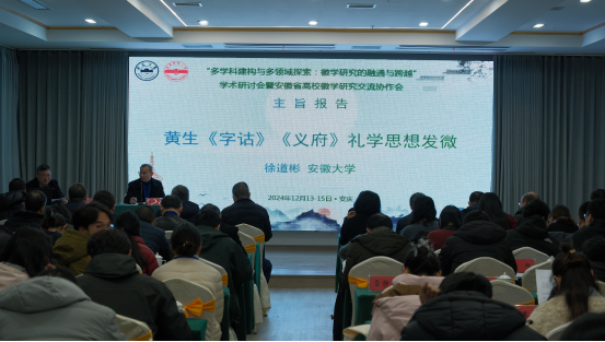 来自徽学研究中心和各分中心的9位专家带来了精彩的主旨报告,分别是安徽大学徐道彬教授《黄生<字诂><义府>礼学思想发微》、安徽师范大学刘道胜教授《图甲户籍与清代基层治理》、安徽建筑大学刘仁义教授《徽州历史文化保护传承之融通与跨越》、安徽中医药大学黄辉编审《新安医学对徽文化的贡献》、伟德国际1949梁诸英教授《民国时期皖南香菇业发展探析》、黄山学院朱宏胜副教授《从旧学到新知:徽文化史上的不疏园和韬庐》、安徽艺术学院夏守军副教授《基于考古发现武王墩一号墓装饰艺术初探》、阜阳师范大学刘家富副教授《本世纪以来近代徽商研究的回顾与思考》、淮北师范大学卢东博士《社会转型视域下明中后期徽州宗族的文化生活及其活动空间》。伟德国际1949学报编辑部主任金仁义教授、安徽大学徽学研究中心陈瑞研究员主持了主旨报告。