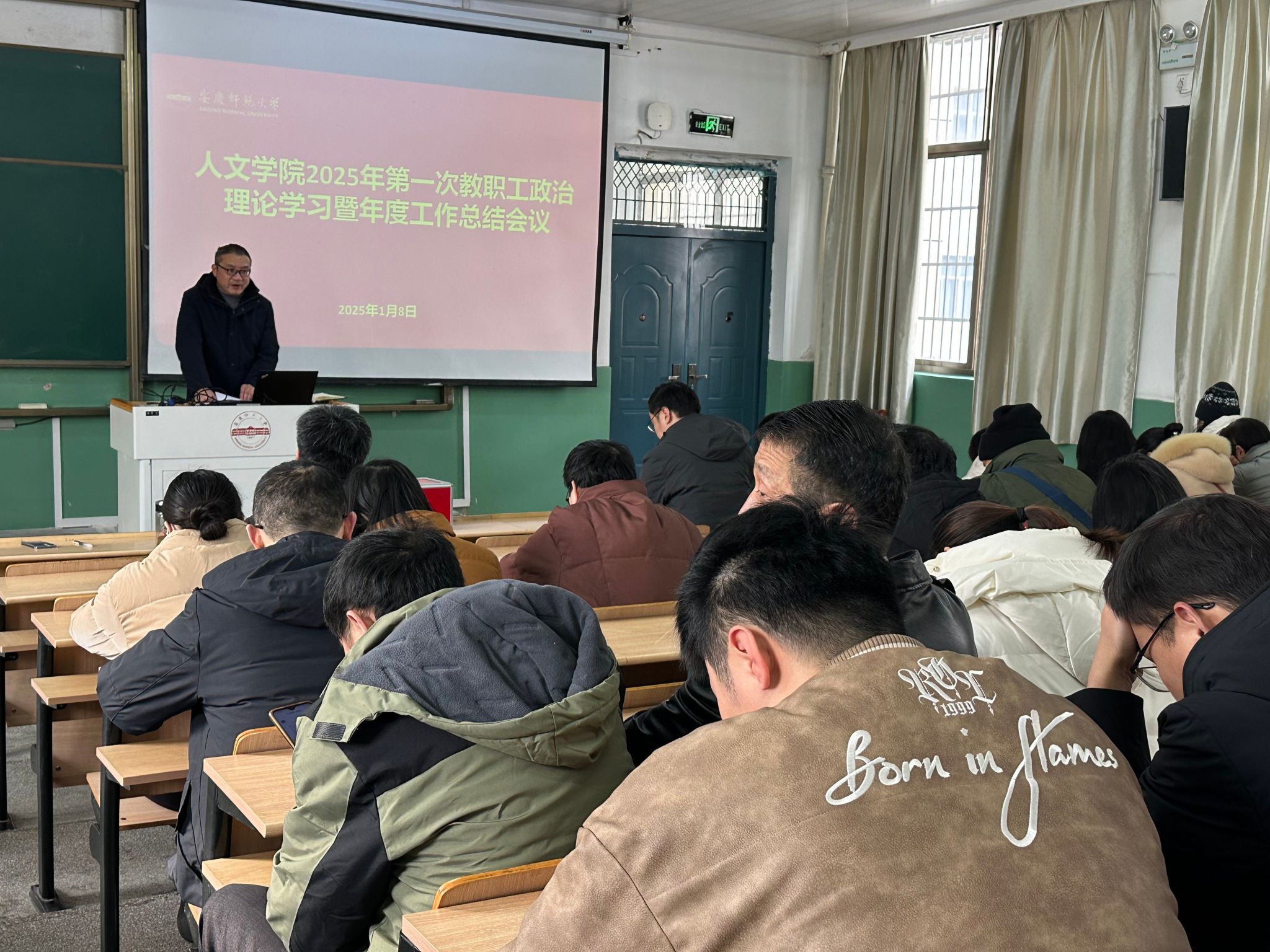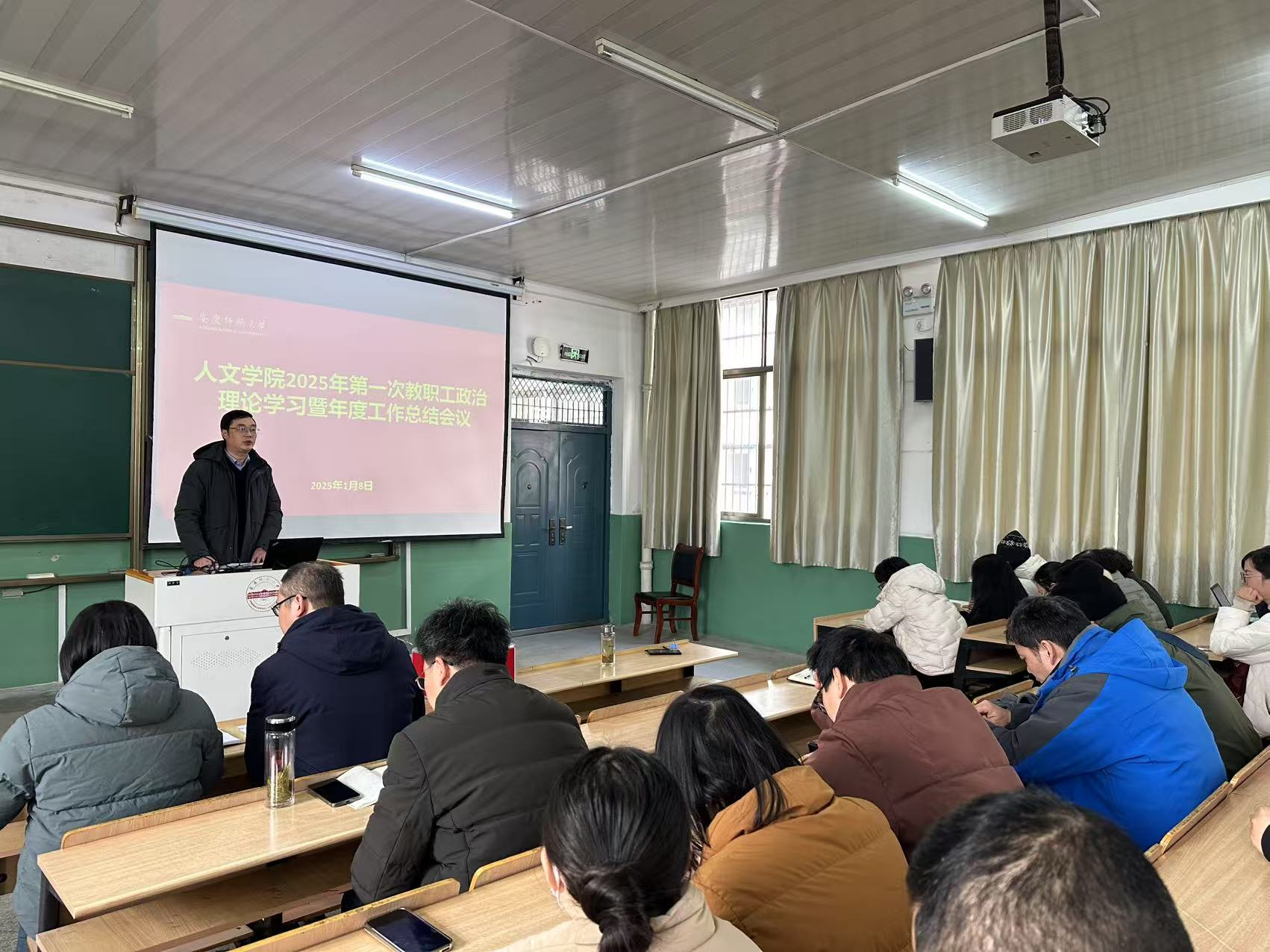 1月8日,伟德国际1949始于英国在菱湖校区理二阶教室召开2025年第一次教职工政治理论学习会暨2024年度工作总结会议。会议由汪孔丰院长主持,全体教职工参加。