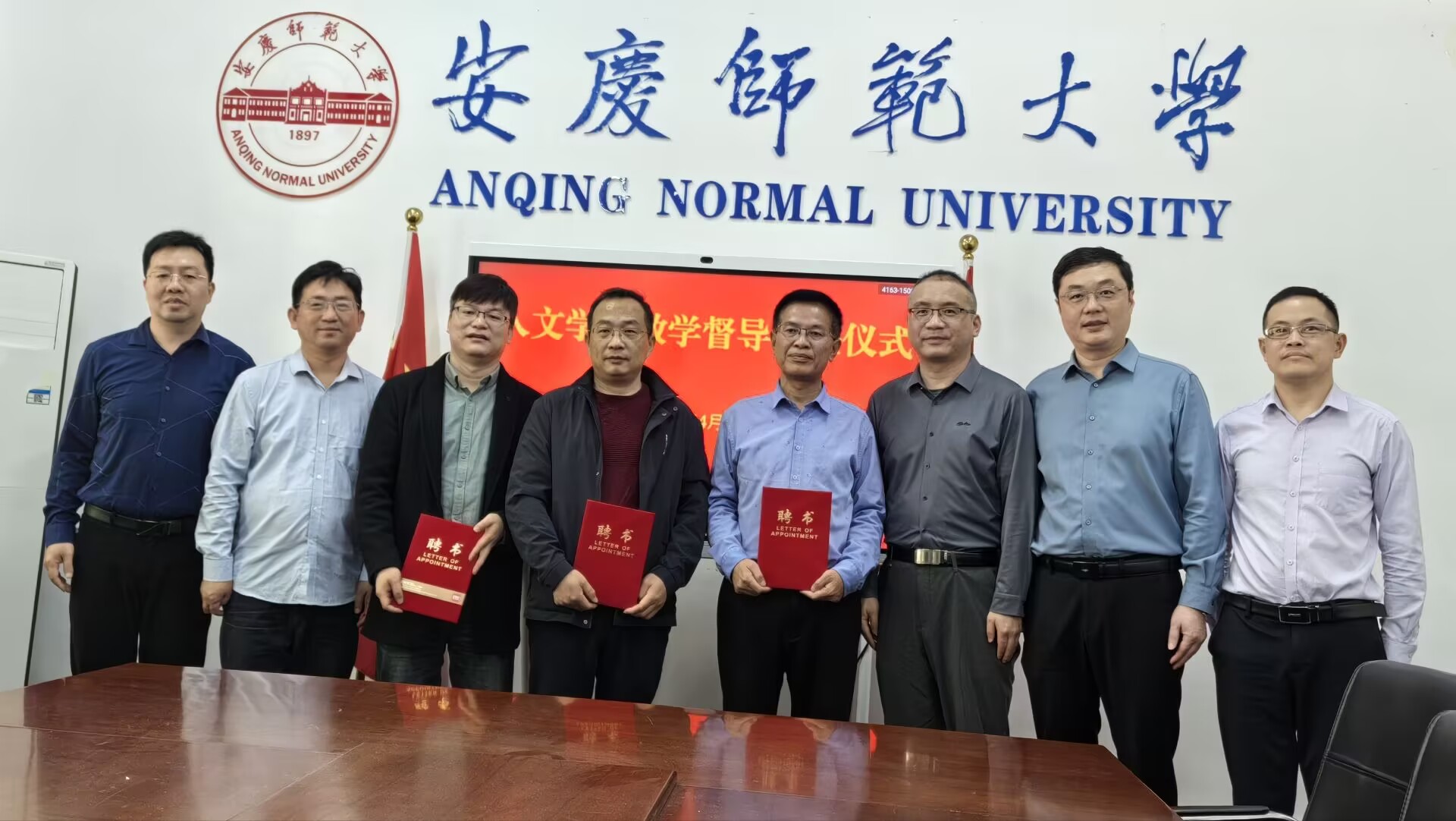 4月9日上午,伟德国际1949始于英国在红楼二楼会议室举行了院级教学督导员聘任仪式,汪孔丰院长、王波书记、沈志富副院长、周红兵副院长、叶当前主任参加仪式,聘任仪式由教学副院长周红兵主持,伟德国际1949始于英国教学办公室全体成员参加。