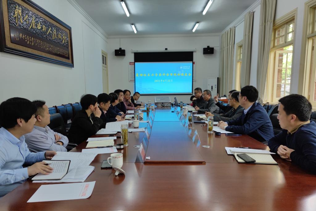 各相关部门负责人结合各自职能,就菱湖校区办学条件和服务保障进行了交流讨论,提出了相关意见和建议。会议就急需解决的有关问题进行了明确,有关重点事项将提交校长办公会研究。