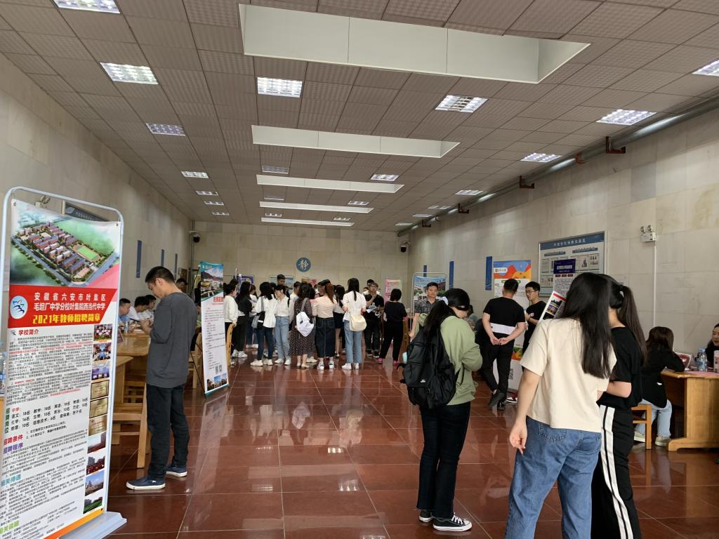 招聘会共有北京师范大学宣城学校、肥东圣泉中学、萧县鹏程中学等19所学校,提供了岗位268个,涵盖了中文、历史等学科,吸引了近七百余名学生参与。