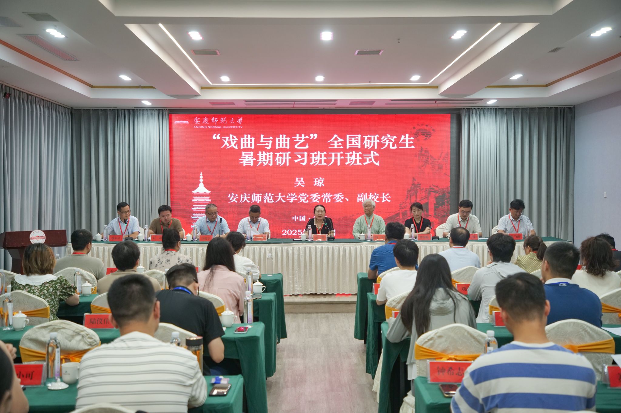 7月6日,2025年“戏曲与曲艺”全国研究生暑期研习班开班式在我校隆重举行,来自北京大学、南京大学、中国戏曲学院等全国20多所知名学府的青年学子参加学习研讨。校党委常委、副校长吴琼出席开班式并讲话,研习班特聘主讲专家、中国昆曲研究中心常务副主任、苏州大学博士生导师周秦教授出席,学科建设处、研究生院、伟德国际1949始于英国、黄梅剧艺术学院等单位负责同志参加开班式。