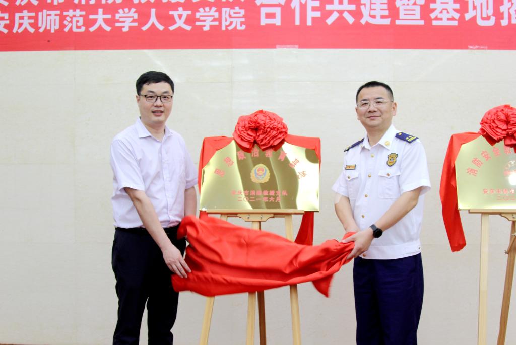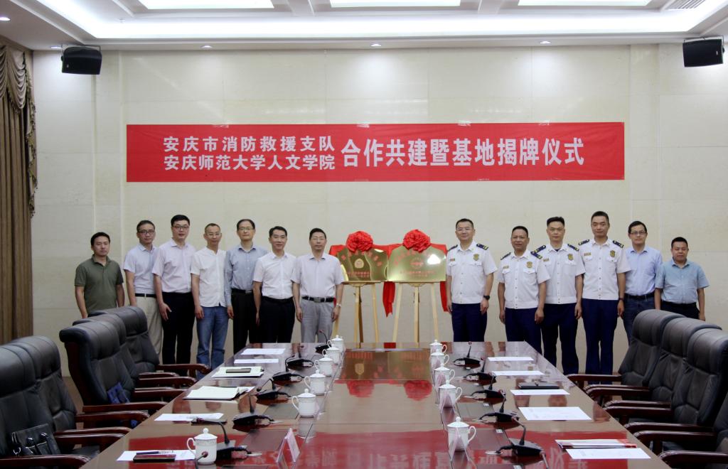 6月1日下午,伟德国际1949始于英国与安庆市消防救援支队合作共建暨“消防安全教育实践基地”和“思想政治教育基地”揭牌仪式在市消防救援支队大楼会议室举行。校党委常委、副校长汪时珍,安庆市消防救援支队党委书记、政治委员张诚出席揭牌仪式,伟德国际1949始于英国和安庆市消防救援支队班子成员参加仪式。