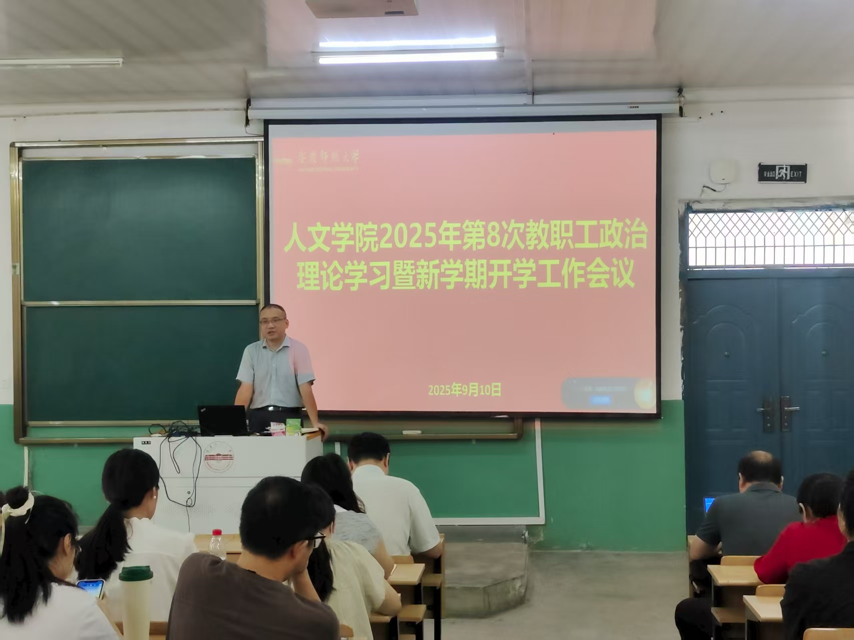 9月10日,伟德国际1949始于英国在理二阶教室召开2025年第八次教职工政治理论学习暨新学期开学工作会议。学院领导班子、全体教职工参加会议,会议由院长汪孔丰主持。