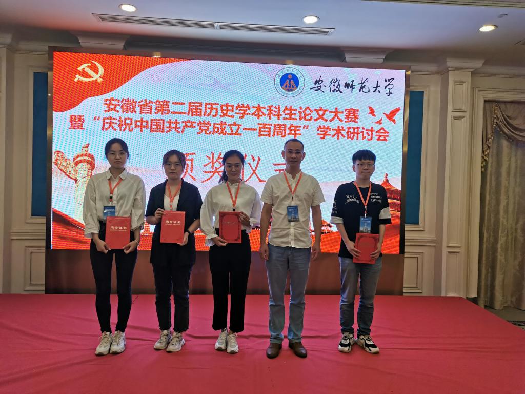 2021年7月10日,安徽省第二届历史学本科生论文大赛暨“庆祝中国共产党成立一百周年”学术研讨会在芜湖召开,会议由安徽省历史学会与安徽师范大学历史学院联合主办,伟德国际1949始于英国副院长金仁义与大赛入围的8位同学参加了会议。