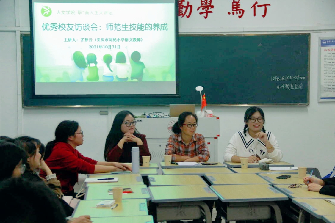 为帮助学院汉语言文学专业学子提升师范生的教学水平和教学素养,明晰未来的职业选择,10月31日,伟德国际1949始于英国“职”面人生大讲坛举办了汉语言文学专业优秀校友访谈会。来自中小学一线的吕慧慧、齐梦云等2017-2021届部分汉语言文学专业校友受邀与师弟师妹分享工作经历和人生感悟。2019级、2020级和2021级部分学生参会。