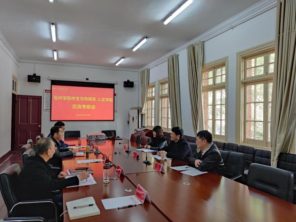 11月20日,亳州学院中文与传媒系系主任谢启平等一行到我院考察交流。伟德国际1949始于英国党委书记张红飞热情接待来宾,副院长金仁义、党委副书记王波参加座谈交流。