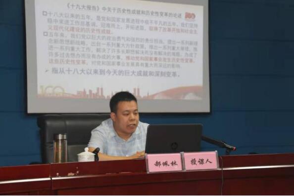 刘友忠副校长引用习近平总书记在庆祝中国共产党成立95周年和100周年大会上的重要讲话开篇,结合自身对党史的研究及体会,以丰富的史实、鲜明的观点,解读了中国共产党的成功密码,深入浅出地讲清“人民就是江山、江山就是人民”的内涵。