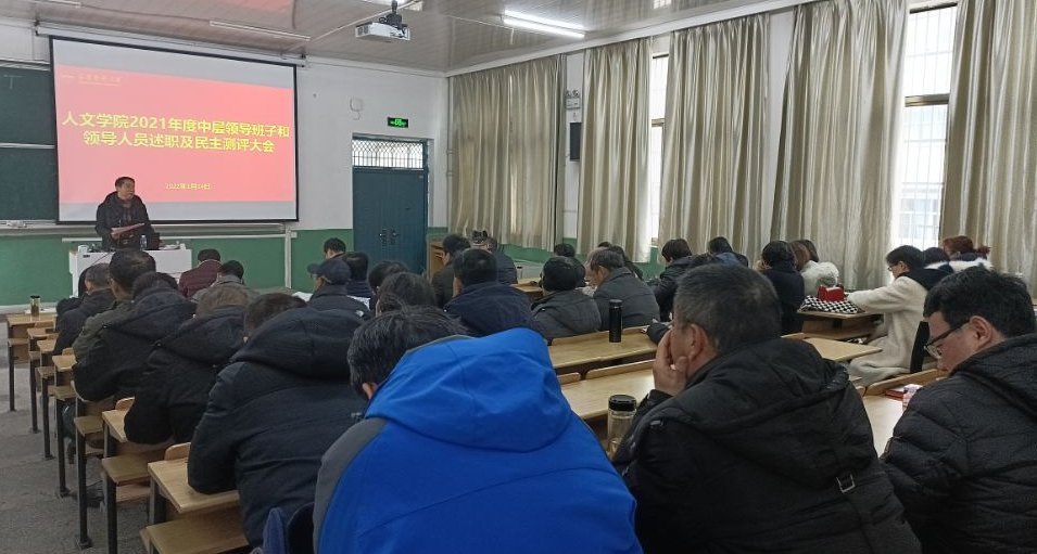 1月14日上午,伟德国际1949始于英国召开2021年领导班子考核述职述德述廉暨年度总结工作会议。学院领导班子成员张红飞、金仁义、王波、汪孔丰、沈志富、周红兵,学校年度综合考核工作领导小组办公室有关人员出席会议。全体教职员工参加了会议。