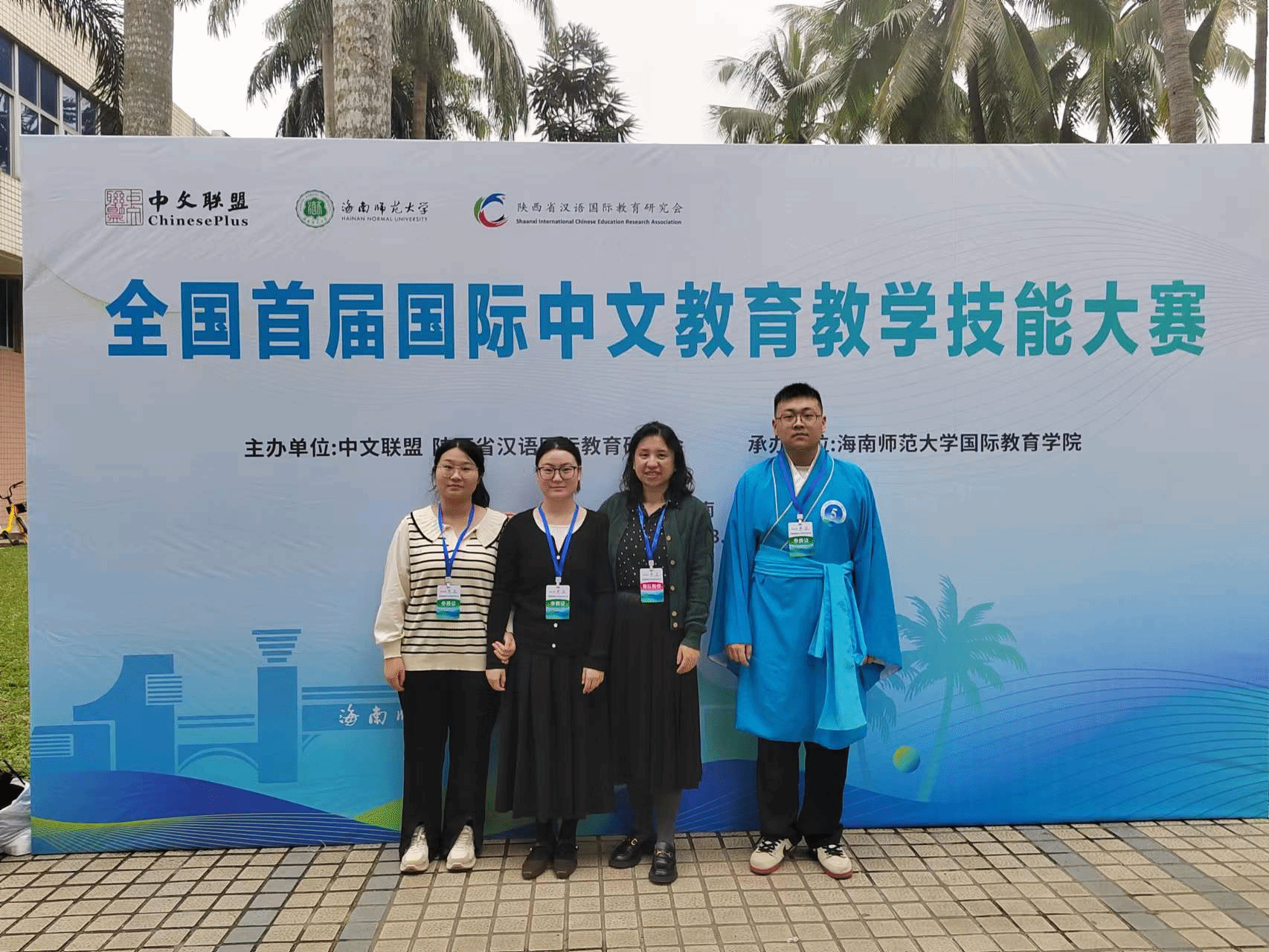 由汉语国际教育研究会与中文联盟、海南师范大学共同主办“全国首届国际中文教育教学技能大赛”于2023年12月2日至3日在海南师范大学龙昆南校区成功举办。伟德国际1949始于英国张瑾老师带队,2022级汉语国际教育专业张佳怡、胡晓凤、2023级国际中文教育硕士生罗浩诚三名选手赴海口参赛。