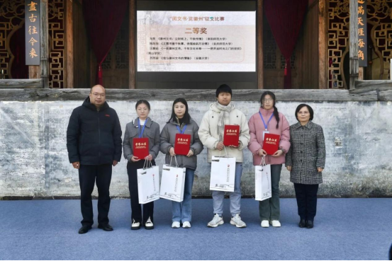 “览徽州”阶段启动仪式于当日上午在全国重点文物保护单位、国家三级博物馆潜口民宅博物馆举行,主办方代表、徽州文书馆藏联盟会员单位、获奖大学生和黄山学院等高校师生80余人参加。学院副院长沈志富老师、郝佩林老师带队参加“阅文书”阶段颁奖仪式暨“览徽州”阶段启动仪式。仪式上,活动主办方代表向“阅文书”大赛获奖学生颁奖,现场还开展了徽剧《水淹七军》和歌曲《梦寻徽州》展演、文书观摩、社教体验、文创展示等丰富的文化活动,组织参观潜口民宅博物馆。让与会嘉宾和师生亲身感受徽州文书的独特魅力,深刻领略徽州文化的博大精深。