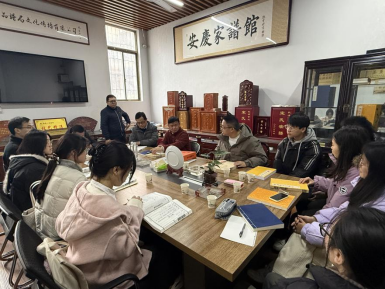 一品谱局是一家专注家谱印刷、整理与编排的专业机构,深耕家族文化领域,不仅掌握着精湛的家谱编印技艺,还收藏了众多不同地域、不同体例的家谱范本,涵盖欧式、苏式等经典家谱编排形式,是了解家谱制作流程与家族文化传承的重要平台。活动中,谱局负责人为我院师生详细讲解了家谱从原始资料整理、体例编排到制版印刷的全流程,展示了传统雕版印刷与现代印刷技术在谱牒制作中的融合应用。学生们近距离观摩了家谱印谱的制作工艺,对皖江地区宗族史中家谱的重要地位、明清时期家谱修订的历史背景有了更直观的认识。