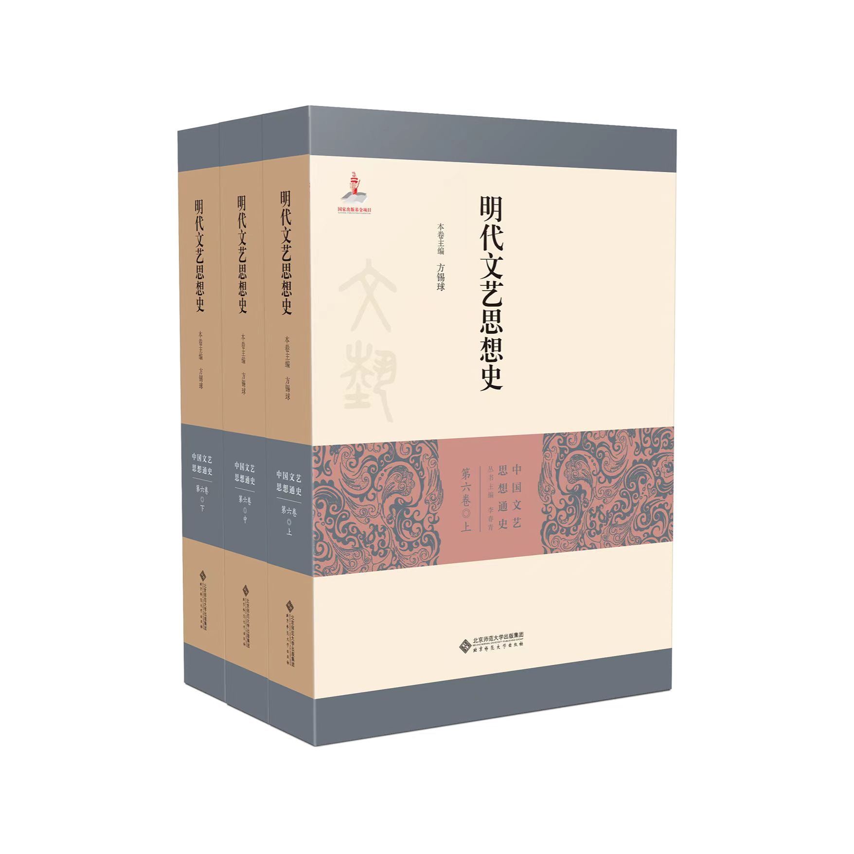 近日,我院方锡球教授领衔主编的《明代文艺思想史》由北京师范大学出版社出版,分上中下三册,一百六十余万字。该书作为安徽省高峰培育学科建设重大科研成果,入选国家出版基金重大项目,同时也是教育部人文社科重点研究基地北京师范大学文艺学研究中心重大项目《中国文艺思想通史》的重要组成部分。该书分诗歌、散文、小说、戏曲、园林、书画等六大板块,运用历史、逻辑和文化诗学的综合方法研讨明代文艺思想的发生、发展和确立的过程,全景展示了明代文学艺术思想的基本面貌及演进轨迹,对明代文艺思想作出实事求是的阐释,是国内文艺学研究的前沿之作。