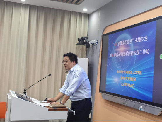 活动伊始,教务处张俊生副处长发表致辞。他介绍了教务处近年来在推进“AI+教育”智慧课程建设方面所做的努力;他指出,在当前教育数字化转型的大背景下,AI技术对于推动教学创新、提高教学质量有着重要意义;他要求,各学院应结合本学院专业、课程特点,加大AI智慧课程建设力度,推动AI赋能教师教学创新实践,通过课程建设和教学创新实践持续提升人才培养质量。