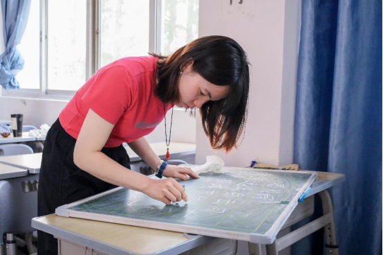 比赛过程中,选手们严格遵守赛制要求,根据自身意愿与优势,从硬笔字、毛笔字和粉笔字三项比赛中自行选择赛道按序提交作品。选手们凝神聚气,坐姿端正,规范书写作品内容,将汉字的形体之美融入笔墨之中,在行笔之间尽显师范生的专业素质。粉笔字书写环节,选手们根据工作人员的指定篇目进行板书创作,灵活控制粉笔的角度与力度,合理设计字距行距,展现出扎实的粉笔板书功底。