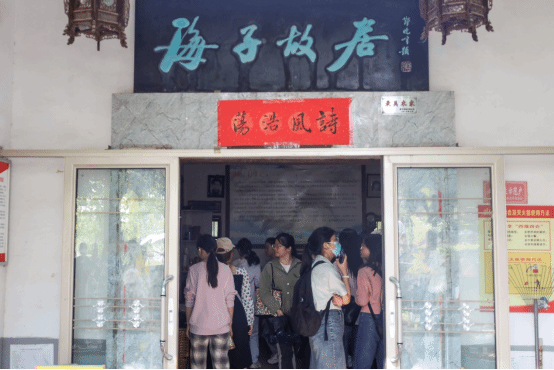 “五岁的黎明,五岁的马,你面朝江水,坐下……可能是姻缘,也可能是友情。”在本次实践教学的第一站——海子故居及其纪念馆,伟德国际1949始于英国学子在海子故居门前的广场上,齐声朗诵了海子的诗歌《给安庆》。海子原名查海生,是当代著名诗人,在他短暂的一生中,共创作了近200万字的作品。海子的故居是一座简朴的小瓦房,屋内悬挂有海子的照片,并保留着海子书房。其中一本记录来访者留言的笔记本上,记录了许多当代诗人对海子的赞美和怀念。在故居旁的海子纪念馆中,陈列有海子的生前遗物,完整呈现了海子一生的经历,展示了他各个时期所创作的诗歌作品。师生们低吟着海子的诗句,回顾了他短暂而又灿烂的一生。对海子故居的调研之行实现了让书中人物“活过来”,有利于增强人文学子对所学专业的感性认识,提升专业认知水平。
