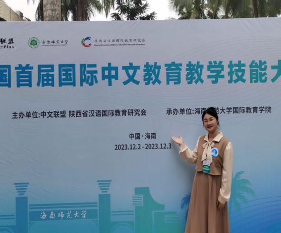(3)以赛促学强技能。鼓励学生参加各类国际中文教学大赛,提升国际中文教学实践能力。在2022安徽省首届国际中文教学微课大赛中,汉语国际教育专业学生朱琳获得一等奖。2024年在全国第二届国际中文教育教学技能大赛中汉语国际教育专业学生任文清、2023级国际中文教育硕士生詹应霞获得优秀奖。